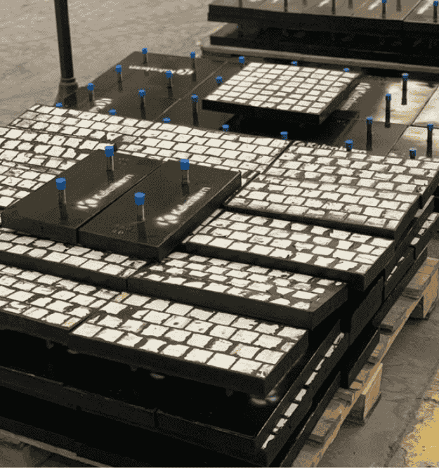 Alfatec fournit ce matériau composite KALIMPACT intégrant un support en caoutchouc vulcanisé, destiné aux zones soumises à de forts impacts combinés à une abrasion importante. Selon les exigences, KALIMPACT peut intégrer : Basalte fondu ABRESIST, Céramiques KALOCER, ou Plaques rechargées KALMETALL.